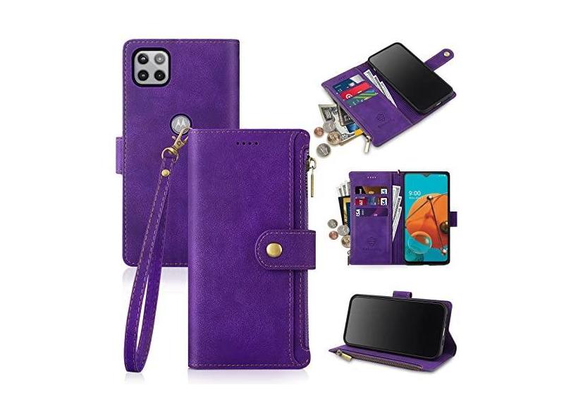 Antsturdy Capa carteira compatível com Motorola One 5G Ace 2021 com porta-cartões para mulheres e homens, capa flip de couro PU com bloqueio de RFID, com alça com zíper, compartimentos para cartão de