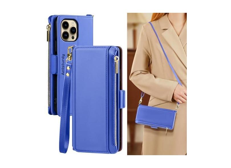 O menor preço encontrado no Brasil para Antsturdy Capa carteira para iPhone 13 Pro Max feminina masculina 【bloqueio RFID】 Capa tiracolo de couro PU para Apple iPhone 13 Pro Max com zíper com alça de pulso flip capa fólio suporte para cartão atualmente é R$ 188,03.