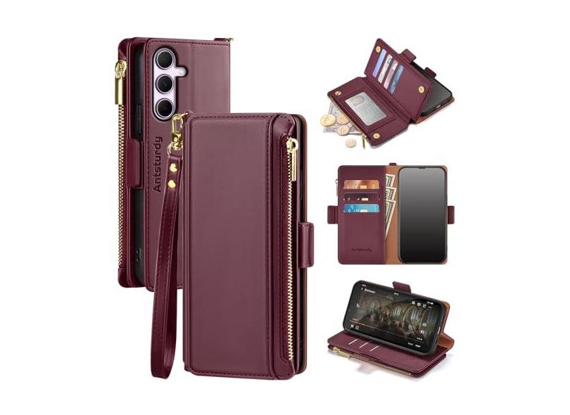 Antsturdy Capa carteira para Samsung Galaxy A35 5G com suporte para cartão, para mulheres e homens, capa para celular Samsung Galaxy A35 5G com bloqueio de RFID PU couro flip alça zíper compartimentos