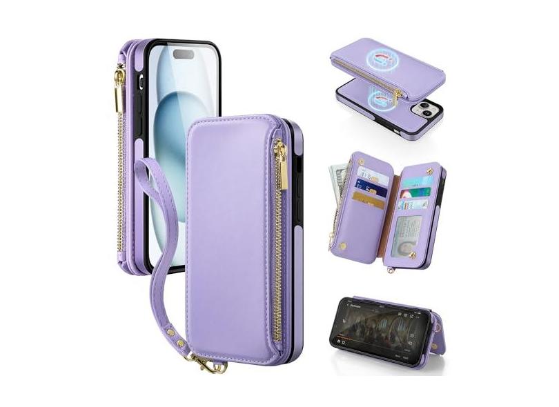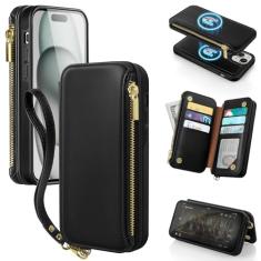 Antsturdy Capa carteira removível 2 em 1 para iPhone 15 com Magsafe, bloqueio de RFID, carregador magnético, sem fio, capa de telefone de couro PU, capa flip com suporte para cartão, alça de pulso