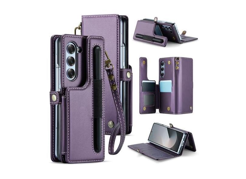 aowner Capa para Samsung Galaxy Z Fold 6 com porta-cartões e compartimento para S-Pen, carteira com bloqueio de RFID para mulheres e homens, capa de couro PU com alça de pulso para Galaxy Z Fold 6