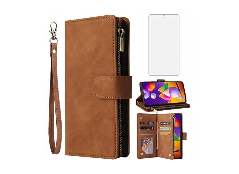 Asuwish Capa carteira compatível com Samsung Galaxy M53 5G, protetor de tela de vidro temperado e capa flip de couro, suporte para cartão, acessórios de celular, capas de telefone robustas para Gaxaly