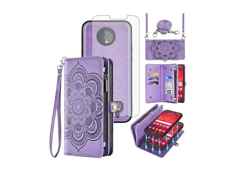 Asuwish Capa de celular para Moto Z3 / Z3 Play carteira com zíper destacável com protetor de tela de vidro temperado alça porta-cartão de flor slot para Motorola MotoZ3 Z 3 3Z Z3play mulheres meninas