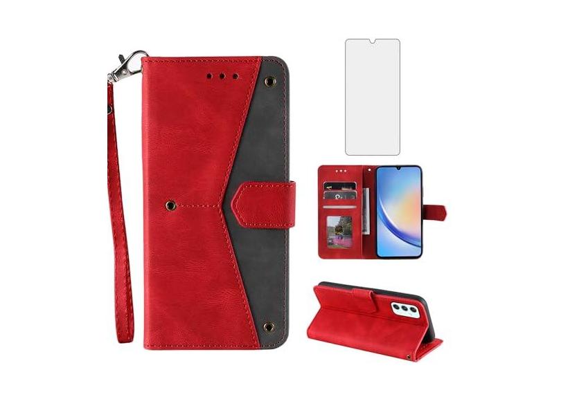 Asuwish Capa de celular para Samsung Galaxy A34 5G carteira de celular com protetor de tela de vidro temperado cordão flip porta-cartão de crédito suporte A 34 34A feminino masculino alça de pulso