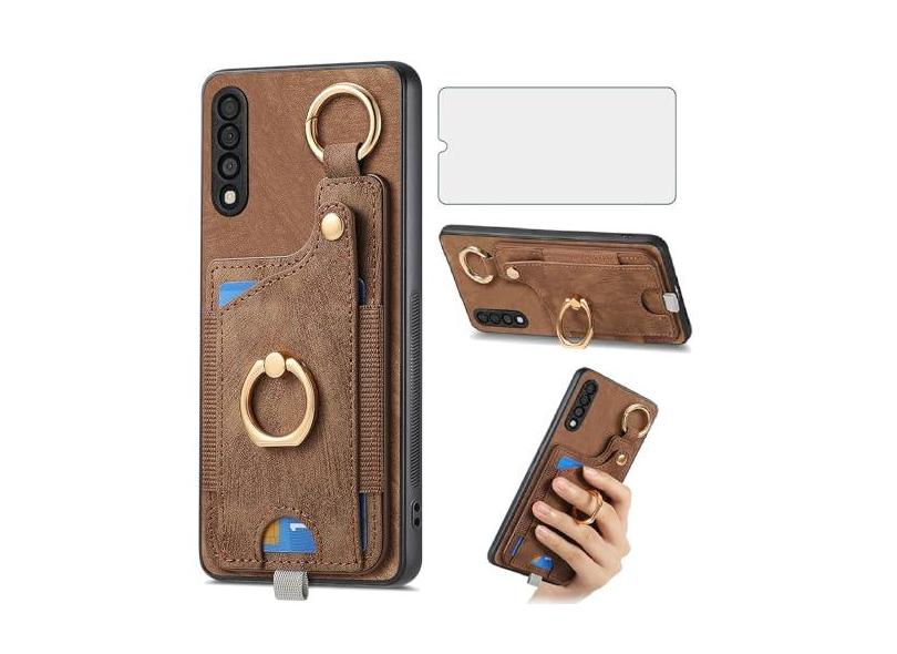 Asuwish Capa de celular para Samsung Galaxy A50 A50S A30S Capa de celular carteira com protetor de tela de vidro temperado e suporte de anel fino para cartão de crédito A 50 50S 30S S50 50A SM A505G