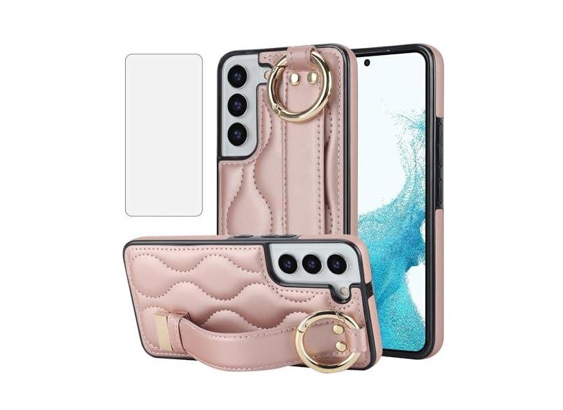 Asuwish Capa de celular para Samsung Galaxy S22 5G com protetor de tela e alça de pulso suporte de pulseira suporte anel de borracha de silicone acessórios de célula S 22 22S 4G G5 15.5 cm feminino