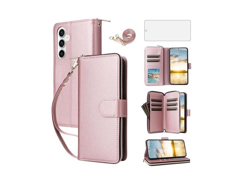 Asuwish Capa de celular para Samsung Galaxy S23 FE 5G com protetor de tela de vidro temperado e carteira com zíper compartimento para cartão com suporte flip acessórios para celular S 23 EF S23FE 23S
