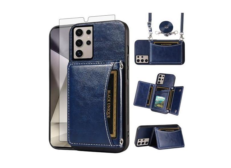 Asuwish Capa de celular para Samsung Galaxy S24 Ultra 5G com protetor de tela de vidro temperado, compartimento para cartão de crédito, alça transversal, acessórios para celular S24Ultra 24S S 24