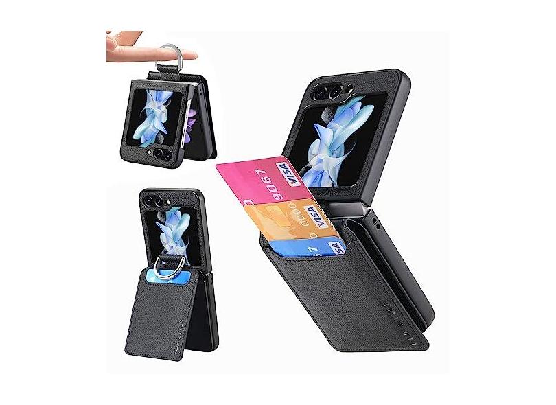 Asuwish Capa de celular para Samsung Galaxy Z Flip 5 5G 2023 com compartimento para cartão, capa carteira e suporte de anel magnético traseiro acessórios móveis capa protetora para ZFlip5 Z5 Flip5 5Z