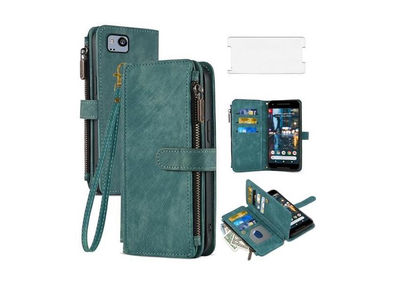 Asuwish Capa de telefone para Google Pixel 2 capa carteira e protetor de tela de vidro temperado couro flip suporte suporte cordão alça de pulso acessórios para celular Pixel2 Pixle Two G011A mulheres