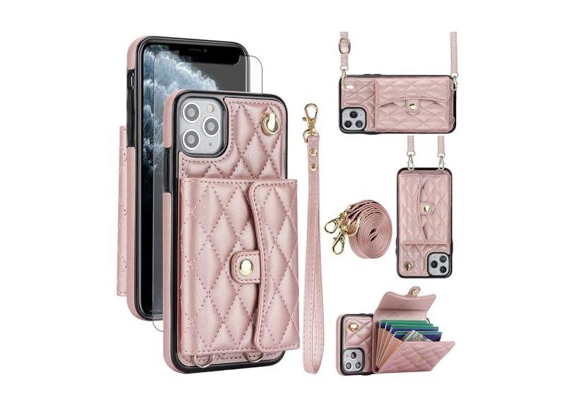 Asuwish Capa de telefone para iPhone 11 Pro Max 6,5 capa carteira com suporte RFID porta-cartão de crédito slot pulso alça transversal cordão de couro celular iPhone11 11pro Promax i XI Plus mulheres