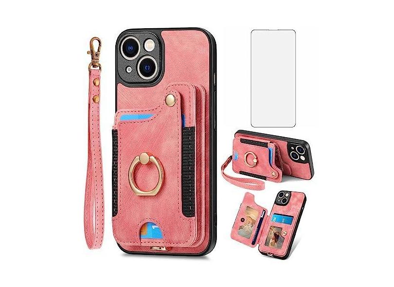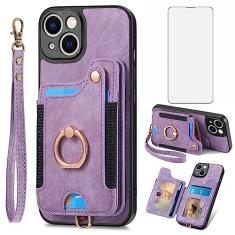 Asuwish Capa de telefone para iPhone 15 Plus 6,7 polegadas capa carteira com protetor de tela e alça de pulso cordão RFID suporte para cartão i-Phone 15+ iPhone15Plus 5G i i15 + iPhone15 15Plus