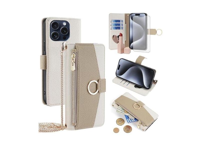 Asuwish Capa de telefone para iPhone 15 Pro 6,1 polegadas capa carteira com protetor de tela e capa flip espelhada, anel suporte para cartão, alça transversal, suporte para celular iPhone15Pro 5G i