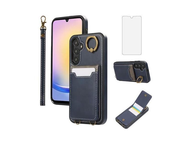 Asuwish Capa de telefone para Samsung Galaxy A05s/A05 com protetor de tela de vidro temperado capa carteira e suporte de anel fino suporte de cartão couro PU acessórios para celular Ao5s Ao5 A 05s 05