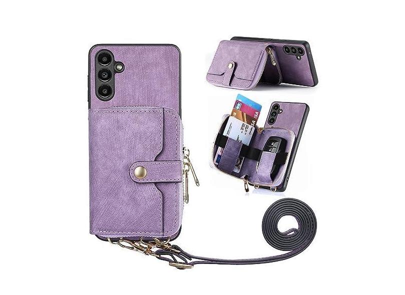 Asuwish Capa de telefone para Samsung Galaxy A24 4G 6,5 polegadas com zíper carteira com compartimento para cartão de crédito alça transversal alça longa de couro A 24 24A S24 G4 SM-A245M/DS mulheres