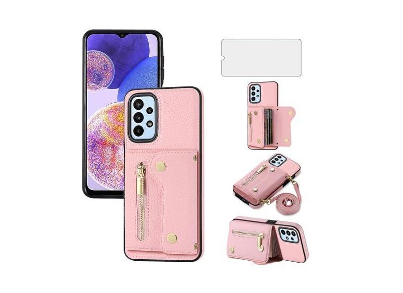 Asuwish Capa de telefone para Samsung Galaxy A32 4G 6,4 polegadas com zíper capa carteira com protetor de tela e compartimento para cartão alça transversal de ombro célula de couro A 32 32A S32 G4