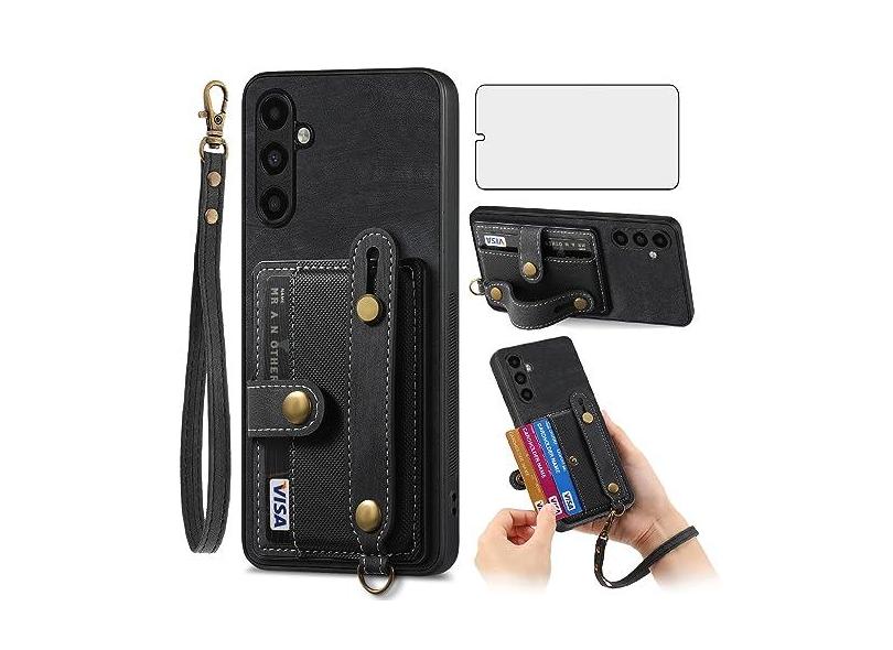 Asuwish Capa de telefone para Samsung Galaxy A54 5G Capa carteira com protetor de tela de vidro temperado e alça de pulso fina com suporte para cartão slot de couro A 54 54A SM A546U 2023 feminino