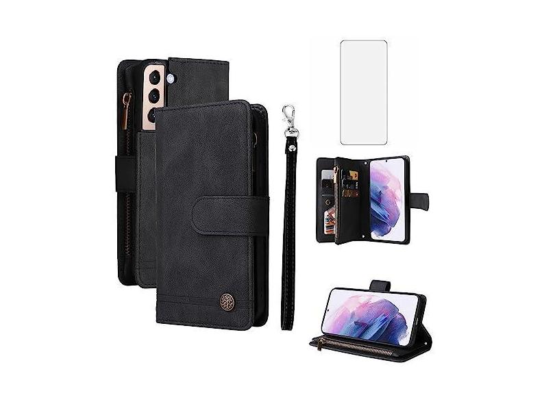 Asuwish Capa de telefone para Samsung Galaxy S22 Plus S22+ 5G Capa carteira com protetor de tela de couro porta-cartão de crédito flip zíper suporte acessórios para celular S22+5G S22plus 22S + S 22