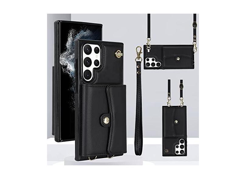 Asuwish Capa de telefone para Samsung Galaxy S22 Ultra 5G Capa carteira com bloqueio RFID suporte para cartão de crédito alça transversal cordão suporte acessórios para celular S22ultra 22S S 22