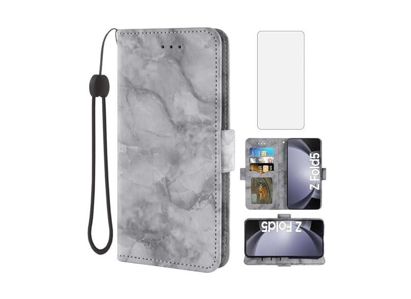 Asuwish Capa de telefone para Samsung Galaxy Z Fold 5 5G 2023 com carteira de mármore flip porta-cartão suporte suporte de couro robusto fólio celular acessórios ZFold5 Z5 G Fold5 5Z mulheres homens