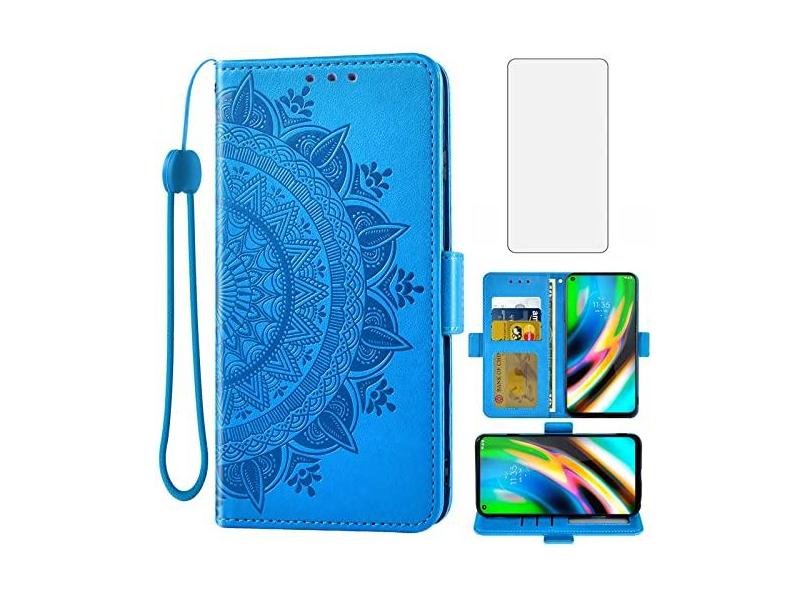 Asuwish Capa tipo carteira compatível com Moto G9 Plus, protetor de tela de vidro temperado, suporte para cartão de crédito, alça de pulso, suporte para celular MotoG9Plus, Motorola 9G G 9 + G9 + G9