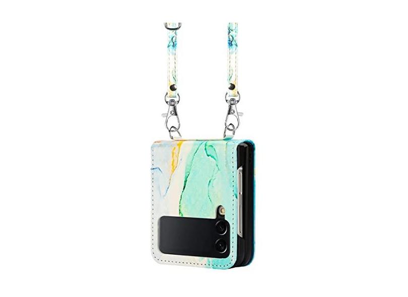 Bolsa tiracolo de couro para celular Samsung Galaxy Z Flip 4 3 5G Flip4 Flip3 Capa à prova de choque com cordão cordão padrão mármore, LS003 com alça, para Galaxy Z Flip 4 5G