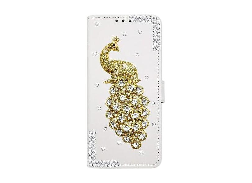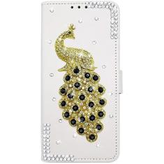 Bonitec Capa de pavão compatível com carteira para iPhone 15, glitter 3D brilhante luxuoso diamante de strass de cristal brilhante para meninas para mulheres capa flip de couro PU com slot para cartão