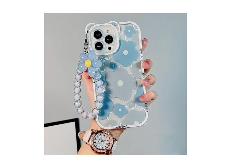 Bonito 3D arco-íris urso orelha flor transparente pendurar telefone corrente capa de silicone para iphone 15 14 pro max 13 12 11 x xr xs capa macia, b, para iphone 11