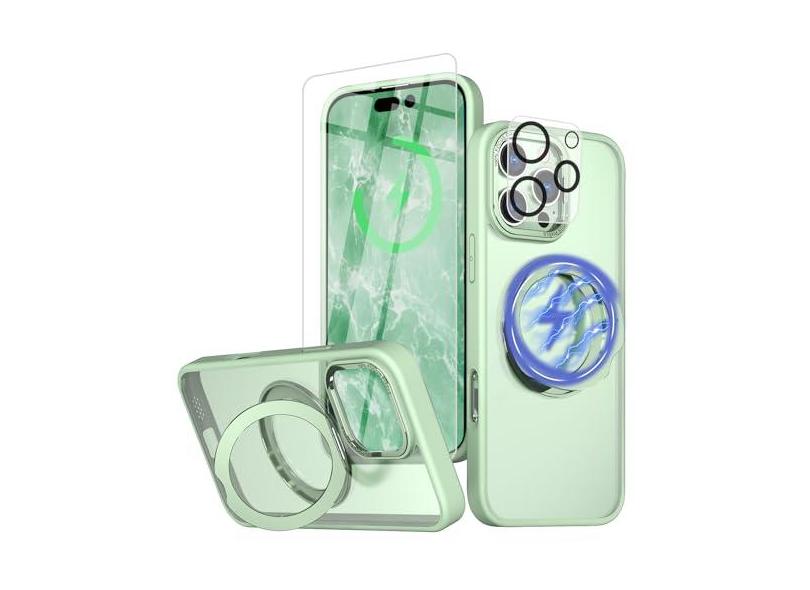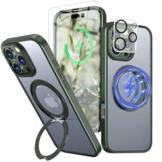 Bonkier Capa para iPhone 16 Pro Max com protetor de tela e protetor de lente [proteção militar contra quedas de 4,5 metros] Suporte magnético compatível com capa MagSafe Slim translúcida (verde