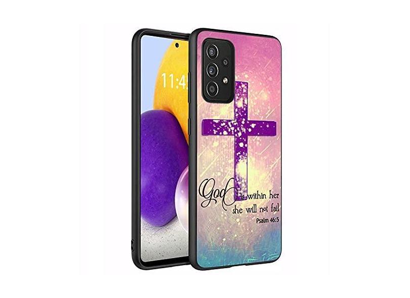BWOOLL Capa para Galaxy A72, capa protetora de silicone ultra fina flexível com absorção de choque TPU premium para Samsung Galaxy A72 (4G/5G) 2021 6,7 polegadas, cruz cristã, versículo bíblico, salmo