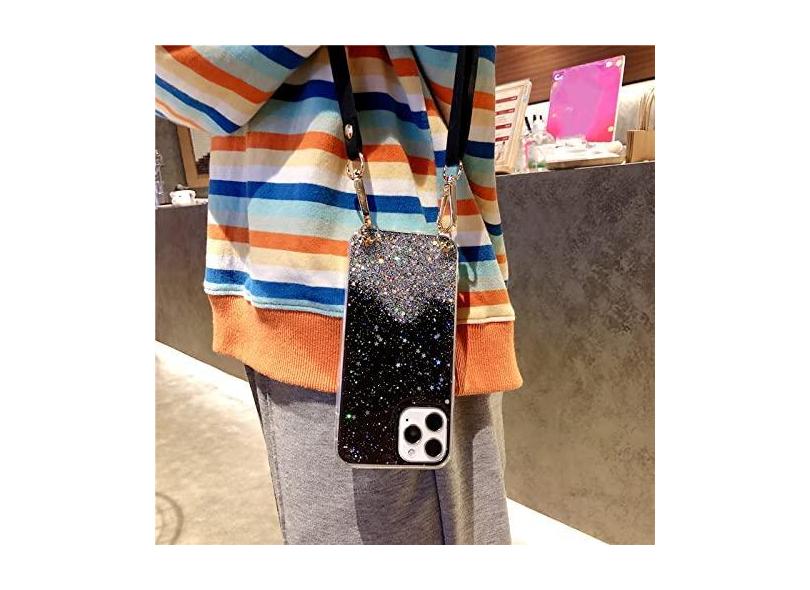O menor preço encontrado no Brasil para Cadeia de glitter transparente cordão cordão corda corda capa de telefone macia para iphone 12 pro max 7 8 plus 11 x xs xr se 2020 mini, preto, para iphone 12promax atualmente é R$ 115,56.