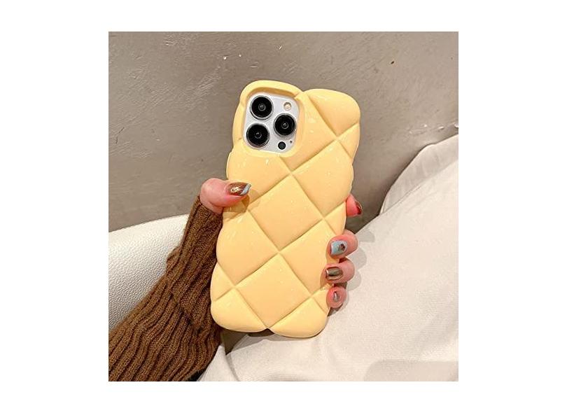 Candy Color Soft Silicone Retro Big Rhombus 3D Case para iPhone 11 12 13 14 Pro Max 14 Plus Luxo Diamond Lattice Phone Cover, amarelo, para iPhone 12Pro Max