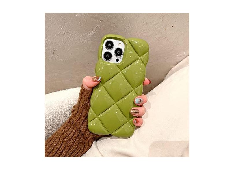 Candy Color Soft Silicone Retro Big Rhombus 3D Case para iPhone 11 12 13 14 Pro Max 14 Plus Luxo Diamond Lattice Phone Cover, verde, para iPhone 11