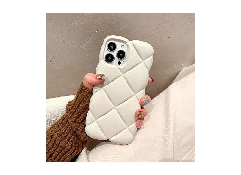 Capa 3D Candy Color Soft Silicone Retro Big Rhombus para iPhone 11 12 13 14 Pro Max 14 Plus Capa de telefone luxuosa com treliça de diamante, branca, para iPhone 11Pro Max