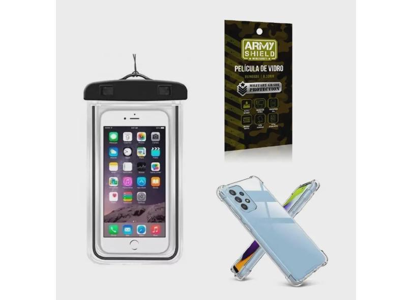 O menor preço encontrado no Brasil para Capa a prova Dágua Samsung A54 + Capa Anti Shock + Película 3D - Armyshield atualmente é R$ 49,90.