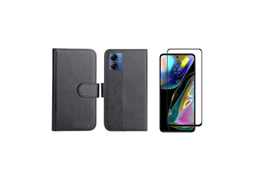 Capa Capinha Case Carteira Flip + Pelicula Vidro 3D Motorola Moto G54