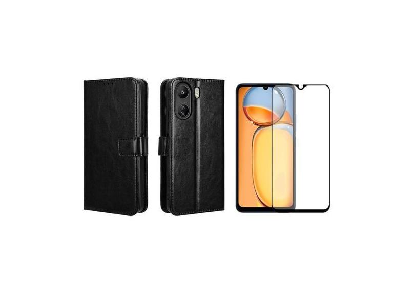 Capa Capinha Case Couro Flip + Pelicula vidro 3D Xiaomi Redmi 13C - KR