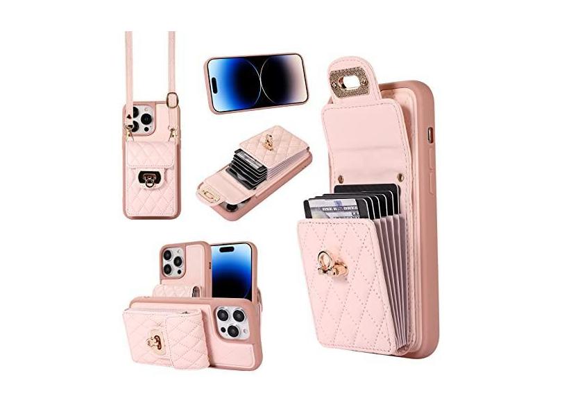 Capa carteira acordeão para iPhone 12 Pro Max, capa de telefone de couro com 6 compartimentos para cartão e encaixe de metal, capa de telefone à prova de choque com cordão transversal ajustável para