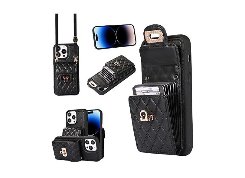Capa carteira acordeão para iPhone 12 Pro Max, capa de telefone de couro com 6 compartimentos para cartão e fecho de metal, capa de telefone à prova de choque com cordão transversal ajustável para
