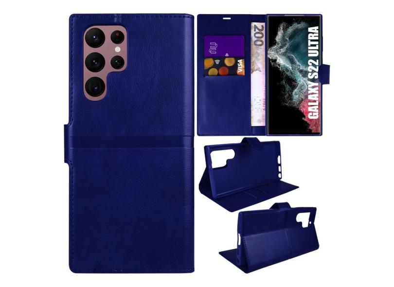 Capa Carteira Azul Escuro + Película De CERÂMICA P/ Galaxy S22 Ultra S908 - Cell in Power25