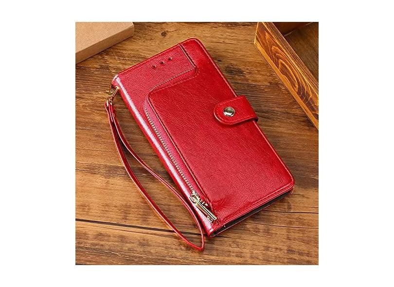 Capa Carteira com Zíper para Samsung Galaxy A53 A80 A71 A51 A20 A30 A40 A50 A60 A70S A22 A32 A42 A52 5G Flip Cover Leather Phone Case, vermelho, para samsung A70