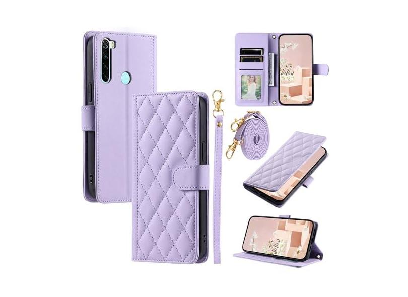 Capa Carteira Compatível com capa carteira Xiaomi Redmi Note 8 com porta-cartão de crédito, alça de ombro magnética de couro PU macio, capa de telefone flip folio book de couro PU capa à prova de choq