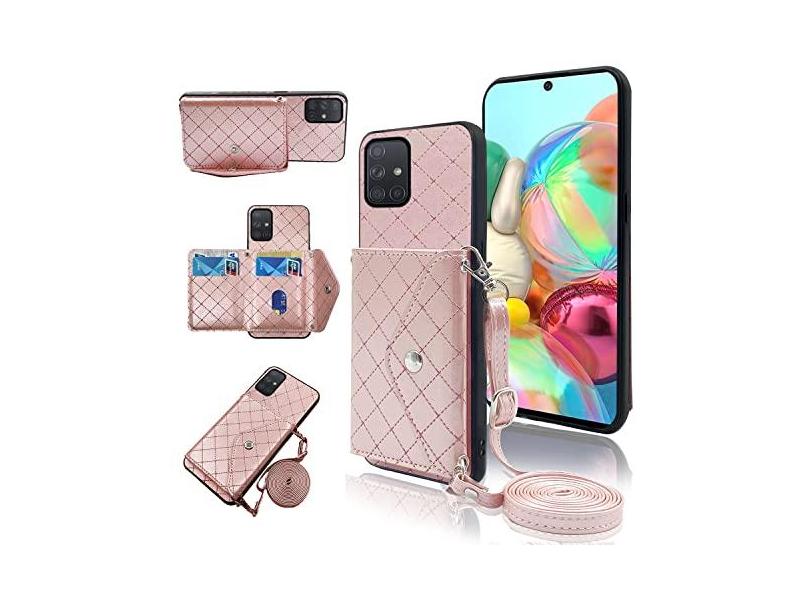 Capa carteira compatível com Samsung Galaxy A71 5G com alça de ombro transversal e suporte de couro para cartão de crédito, acessórios para celular para Glaxay A 71 G5 Gaxaly 71A S71 mulheres meninas