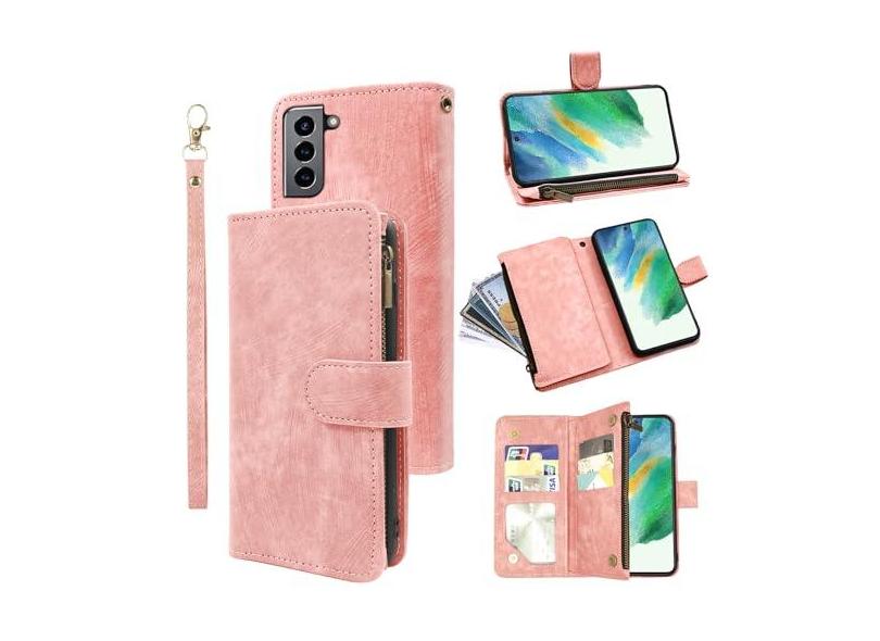 Capa carteira compatível com Samsung Galaxy S21 FE Gaxaly S 21 FE 5G e porta-cartão de crédito de couro vintage premium acessórios para celular Glaxay S21FE5G UW S21FE 21S G5 feminino masculino rosa