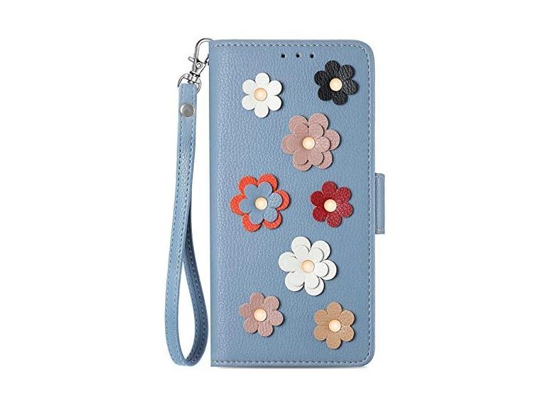 Capa Carteira de Couro Flor 3D para iPhone 13 12 14 Pro Max 11 XS Max XR X SE2022 8/7/6/6S Plus Flip Card Slot Phone Cover, Azul, Para iPhone SE2020