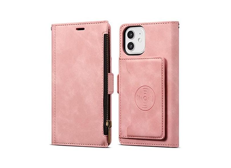 Capa carteira de couro para iPhone 11 12 13 14 Pro Mini XR XS Max X 8 7 6s 6 Plus SE 2020 2022 SE3 Capa de livro com zíper, rosa, para iPhone 11