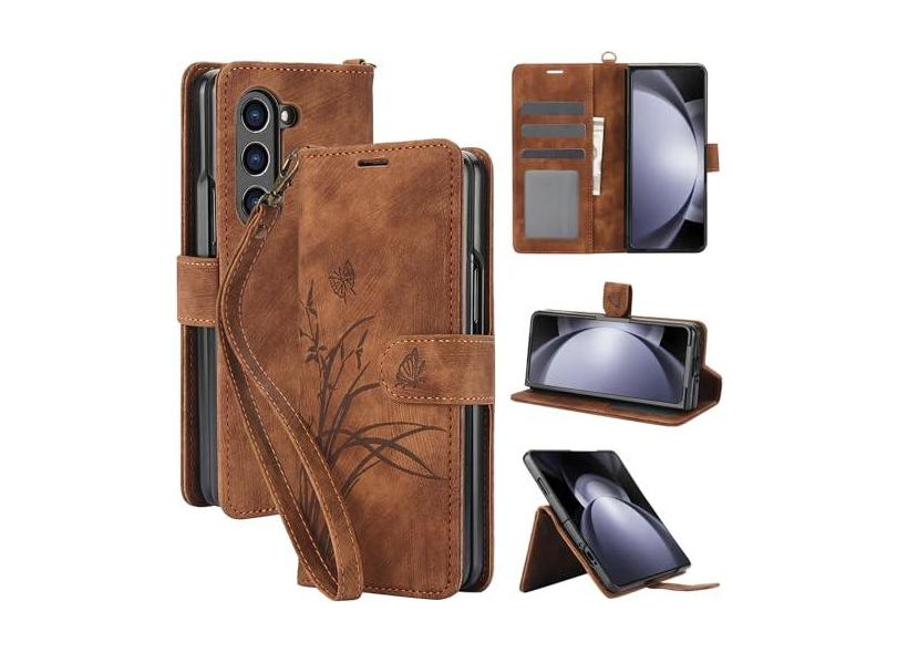Capa carteira para Samsung Galaxy Z Fold 6, capa de telefone de couro com padrão de borboleta orquídea com 3 compartimentos para cartão e 1 compartimento para dinheiro, fivela magnética à prova de