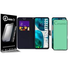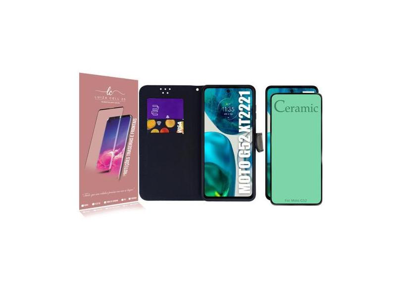 Capa Carteira + Pelicula De Ceramica Compativel Moto G52 Xt2221 6.6 -