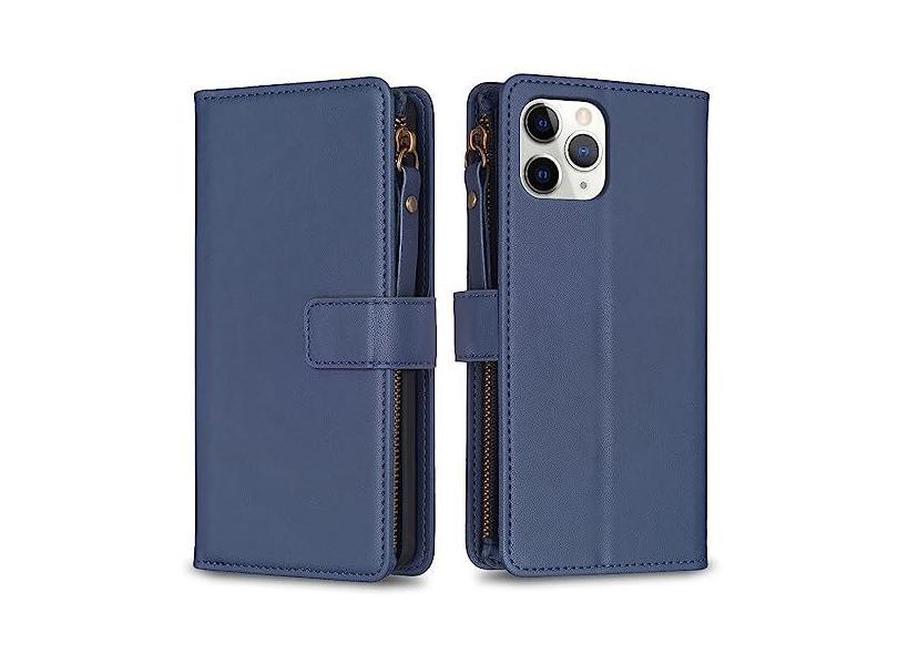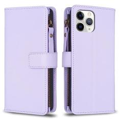 Capa com alça de pulso para iPhone 11 Pro, 9 compartimentos para cartão, 1 carteira de couro com zíper, função de suporte, fecho magnético, capa para celular compatível com iPhone 11 Pro 5,8 polegadas