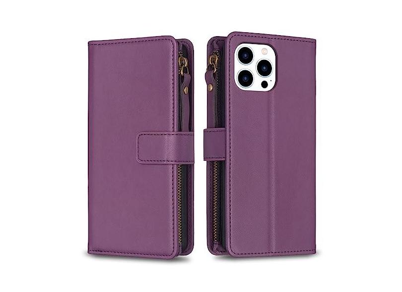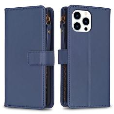 Capa com alça de pulso para iPhone 15 Pro, 9 compartimentos para cartão, 1 carteira de couro com zíper, suporte flip com fecho magnético, capa para celular compatível com iPhone 15 Pro 5G 6,1